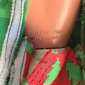1966 Mattel Twist & Turn Barbie: Bendable Knees, Original Earrings, No Date on Head. She is a rescued Barbie that we did an acrylic neck repair on and rerooted her hair. She is wearing a Revolutionary War Period Grinchy Christmas 2 Piece Dress and Hat. Very Good Used Condition - Doll Stand Not Included - See Photos for further description.
