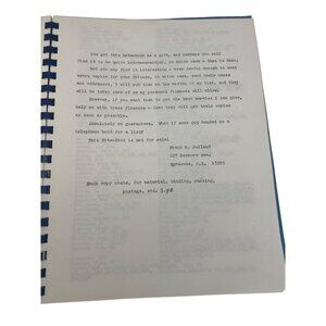Mimeograph/typed pages in blue comb binding; moderate handling/edge wear consistent with age. See pictures for further details on condition.