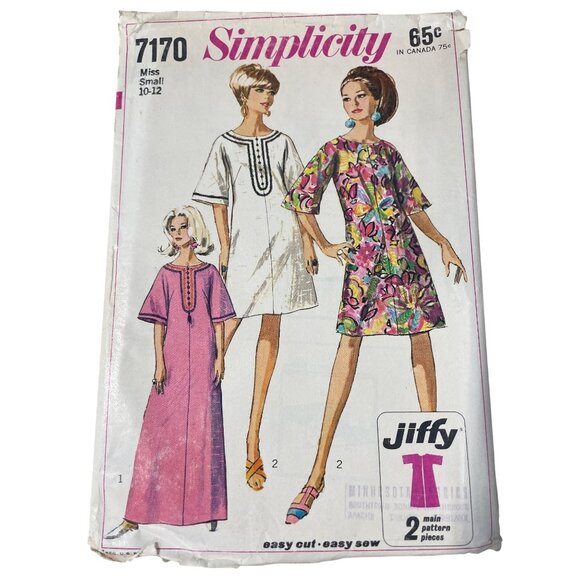 1967 Simplicity 7170 Sewing Pattern Size Small 10-12 Jiffy Caftan Vintage CUT