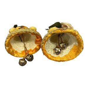 1967 Mr. Christmas Vintage Ornament Gold Velvet Christmas Bell Floral 5 pieces 2 Balls 2 Bells 2 cones