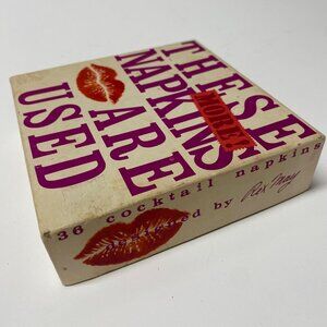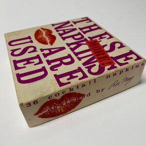 1968 1972 Rex May Cartoon "These Napkins Are Used" 36 Cocktail Monogram Barware