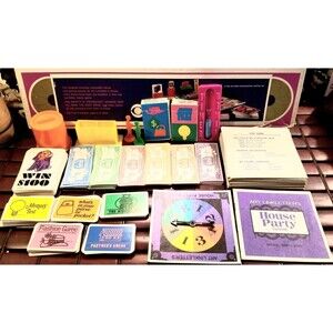 Missing: gameboard 2 playing pieces, plastic house, $win 100 pop-upIncludes: spinner money 2 playing pieces pop-up timer sand timer, card holder special games booklet 16 cue cards19 $520 $1020 $2021 $5039 $10010 $50044/45 regular cards83/90 small cards16 the missing heir cards21 memory test cards12 what's in your purse/pocket cards17 partners guess cards17 fashion game cards