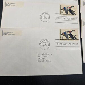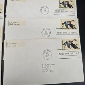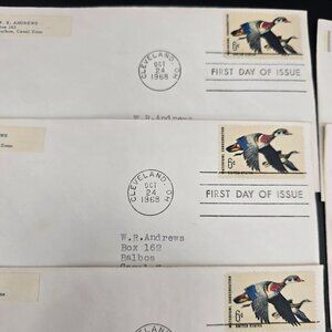 A collection of vintage First Day Of Issue envelopes postmarked October 24, 1968, featuring 6¢ duck Waterfowl Conservation stamps. A wonderful collectible piece. Lot of 10.