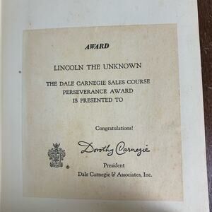 1968 Lincoln the Unknown Dale Carnegie Perseverance Award hardback book