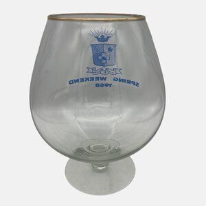 Vintage Sigma Phi Epsilon large snifter glass from a Fraternity Spring Weekend in 1968. The glass is clear and the design is in blue. The glass measures approximately 8" tall.
