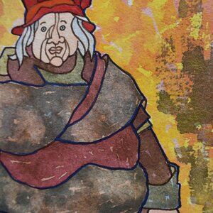 It is a lithograph the has been painting over with a glittery gold paint.
