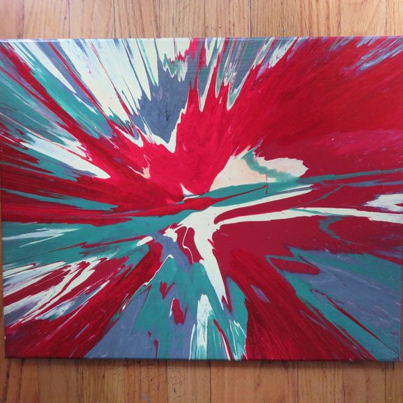 spin art Acrylic on canvas All the sides are painted, you don't need a frame. Each painting is sealed. There is a back hanger, you can place it which ever way you want the painting hung.