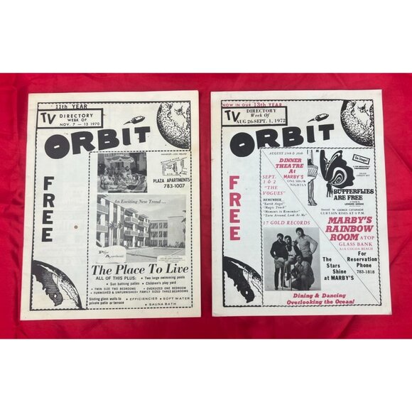 1970 & 1972 Orbit TV Guides Cocoa Beach FL Space Coast Nightlife Ads