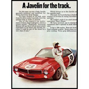 1970 AMC Javelin For the Track and Road 2 Page Vintage Print Ad Man Cave Art