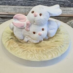1970, Ceramic Cream Bisque Easter Bunny Music Figurine-Plays “Peter Cotton Tail”