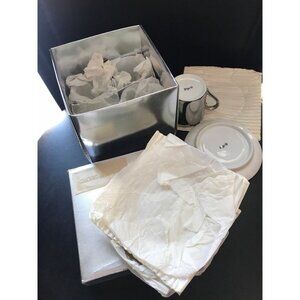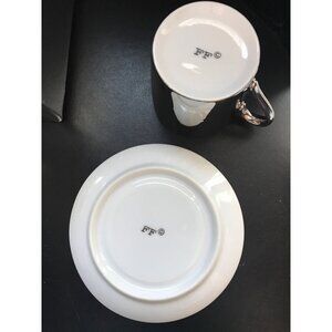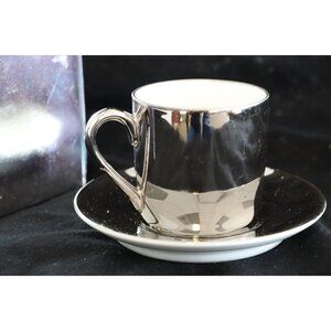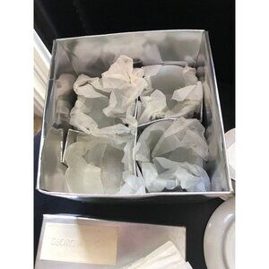 Vtg 1970 GEORG JENSON Set Of Four Demitasse Cups And Saucers Fitz & Floyd New In Box Porcelain With Platinum Overlay NIB
