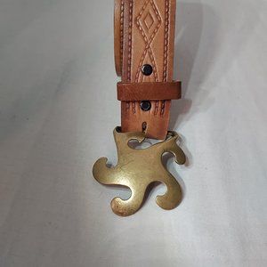 Vintage 1970's calling here. Retro wear Laurie brass star burst solid brass nicely worn belt buckle on a 40" long : one of the holes on belt is marked in pen as shown , cant see when you wear it. otherwise excellent condition.
