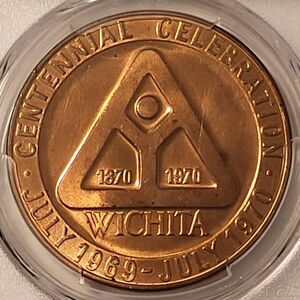 1970 P Wichita Kansas Centennial Bronze Medal D1970-1b MS64 RED PCGS
