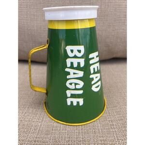 1970 PEANUTS SNOOPY HEAD BEAGLE TIN LITHO GREEN MEGAPHONE CHEIN CHARLIE BROWN