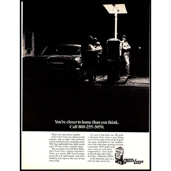 1970 Travelodge Roadside Hotels Vintage Print Ad Gas Station Directory Wall Art
