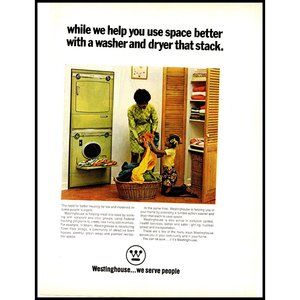 1970 Westinghouse Washer Dryer Stack 2 Page Vintage Print Ad Avocado Green Photo