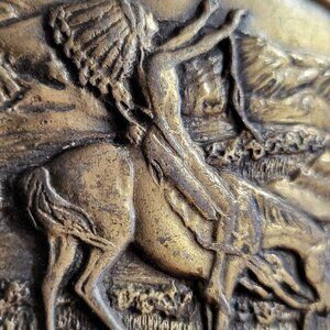 Features a Beautiful Brass Image of Chief Joseph of the Nez Perces Indian Tribe. This quote : "Hear me, my Chiefs! I am tired. My heart is sick and sad. From where the sun now stands, I will fight no more forever." 1877 from the End of Trail. The main figure embodies the suffering and exhaustion of people driven from their native lands.