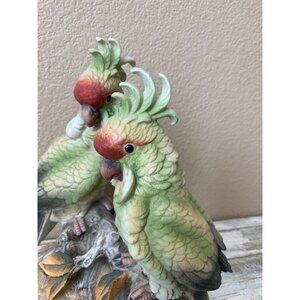 1970s Andrea by Sadek Green Cockatoos – Hand Painted Porcelain Pair - No Box