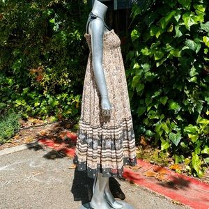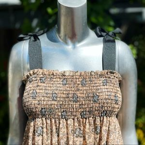 Gah! These ribbon straps🤩So pretty! Totally dreamy flowy floral print peasant dress by 1970s label, Arjon California. Features gauzy cotton blend fabric in cream and black color way, elastic bodice, full flowy skirt, and the sweetest black ribbon shoulder strap detail. No issues to note! Best fits a M. See measurements for exact fit.