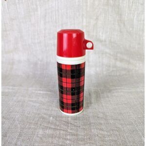 1970s Avon Thermos Red Plaid Glass Wild Country After Shave EMPTY
