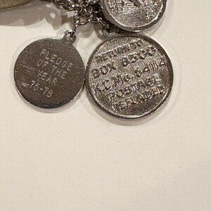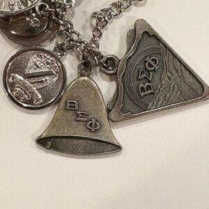 Vintage Beta Sigma Phi 1970s charm bracelet loaded with charms. Very good pre-owned condition.