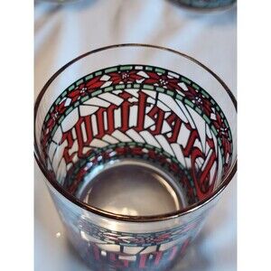 1970s Cera Houze Merry Christmas Seasons Greetings Gold Trimmed Set Of 4 Glasses Signed