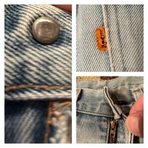 1970s Distressed Orange Tab Big E Levi’s Flared Jeans Talon / Women’s 29x29 *