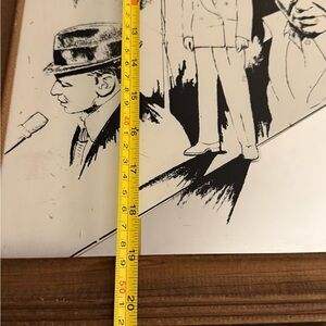 Unique vintage mirror featuring black and white illustrations. Perfect for adding a classic touch to any room.