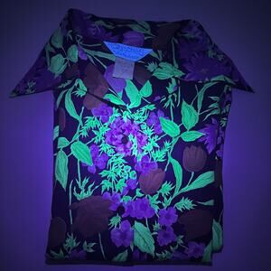1970s Floral Print Blouse Le Soft Shirt Lady Manhattan Glows in UV Blacklight