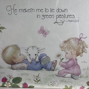Vtg two Framed Children's Prints Psalm 23:2 104:31