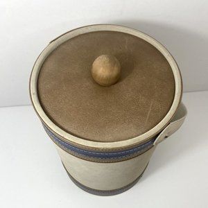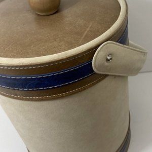 1970s Georges Briard Beige Suede Brown and Navy Trim Lid and Handle Ice Bucket