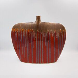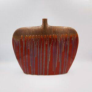 1970s Gorgeous Polichrome Red and Brown Lava Vase in Ceramic. Made in Germany