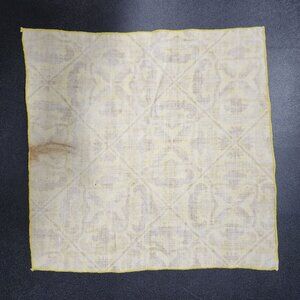 Add a touch of retro charm to your dining experience with this vintage 1970s napkin featuring a vibrant floral tulip design in groovy gold and yellow linen. Perfect for collectors or lovers of nostalgic home decor.