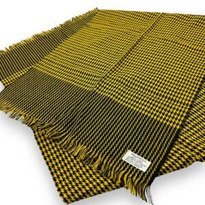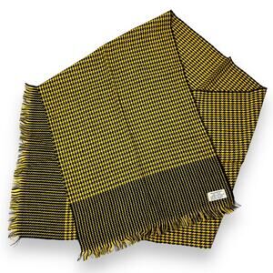 Vintage 1970's Japanese yellow and black houndstooth large winter scarf. Made in Japan. 100% Acrylic. Fringe detail at ends. Bright yellow and black houndstooth design. Scarf is large, measures 19" wide and 67" long (excluding fringe). Excellent like new condition, looks barely worn!