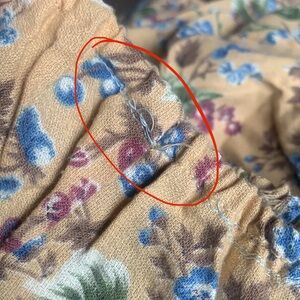 One tiny area (about an inch) were stitching has come loose along waist (see photo)