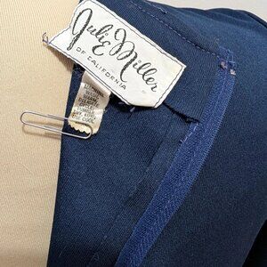 Gorgeous vintage Julie Miller navy blue maxi dress! A beautiful rosette detail is at the neckline, and it needs to be "tacked" onto the left side of the dress. Ankle length, long sleeve, zips up the back. Truly stunning piece.
