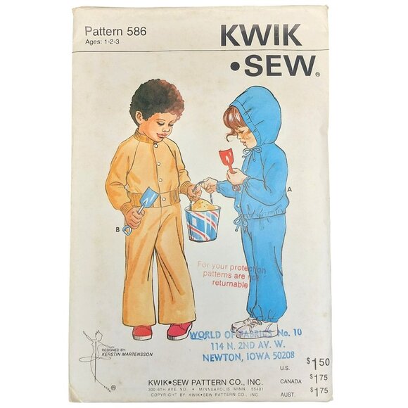A charming vintage Kwik-Sew pattern from the 1970s, offering timeless designs for toddler activewear. This complete set includes instructions for creating a sweatshirt jacket and pants in two styles, perfect for nostalgic sewing projects.