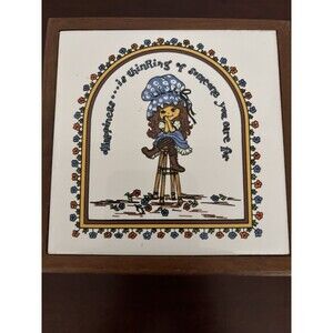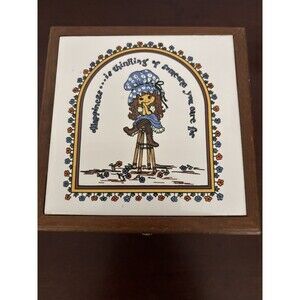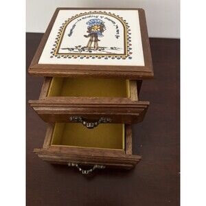 1970's MsPetticoat Kids wood & tile Jewelry box Happiness someone you care for