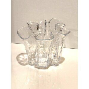 1970s Muurla "Eva" Scandinavian Clear Ice Handkerchief Ruffled Art Glass Vase