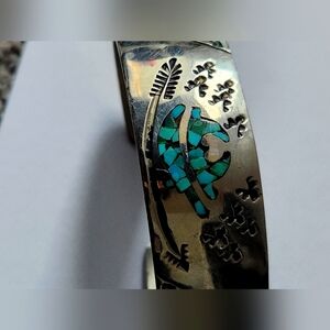 1970's Navajo Turquoise Chip inlay Native American cuff