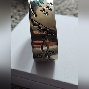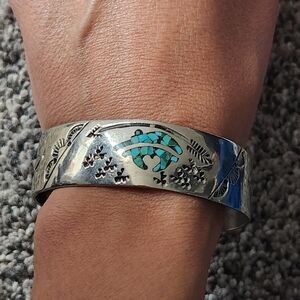 1970's Navajo Turquoise Chip inlay Native American Cuff Bracelet Signed CH