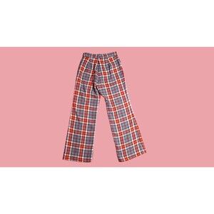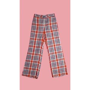 1970s Blue, Red, White and yellow flared plaid trousers.