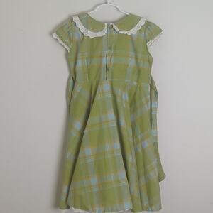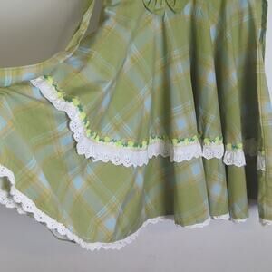 1970s Nostalgic Plaid Eyelet Lace Girls Dress Size 10