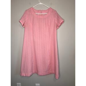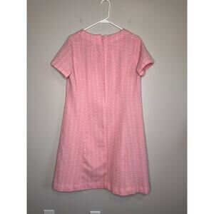 1970s Pink Textured Geometric Romantic Feminine Coquette Volup GoGo Dress L