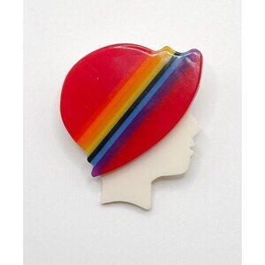 This vintage plastic profile pin from the 1970s features a beautiful art deco design that will surely catch anyone's attention. Measuring 1.5 inches in length, it is perfect for women who want to add a touch of elegance to their outfit. The pin is made of high-quality plastic and features a multicolor design that is both eye-catching and unique.