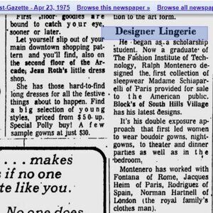 By 1975 he had also worked with the house of Fontana of Rome, Jacques Heim of Paris, Pedro Rodriguez of Spain and Norman Hartnell of London (designer to the Royal Family at the time). According to the April 23, 1975 Pittsburgh Post-Gazette, he began designing for Blanche Lingerie around that time. I found a 1978 ad for Victoria's Secret when they just had one little boutique in Palo Alto, CA featuring his work as well.