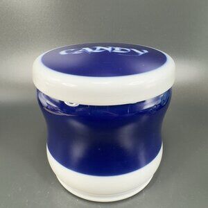 1970s Porsgrund Norway Porcelain Covered Candy Dish Jar Blue White Container VTG