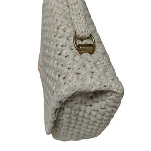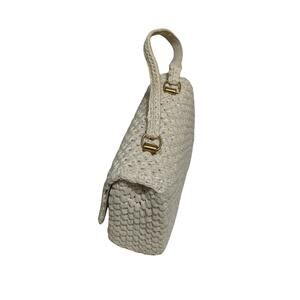 1970s Raffia Cream Top Handle Fold Over Rectangle Handbag Bag Made In Japan