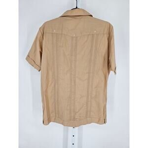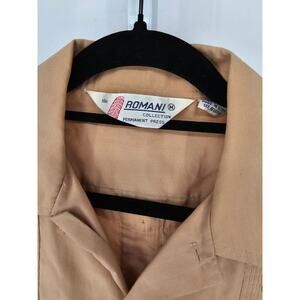 1970s Romani Collection Mens Sz M Short Sleeve Button Up Shirt Beige Embroidered