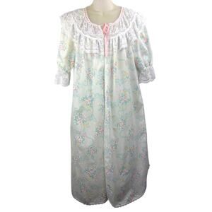 1970's SEARS APOSTROPHE floral lace summer robe. Made in USA. Cotton poly blend. Single pearl button closure in front. Marked size small. Excellent condition.